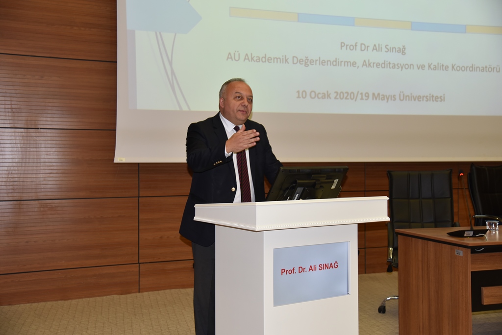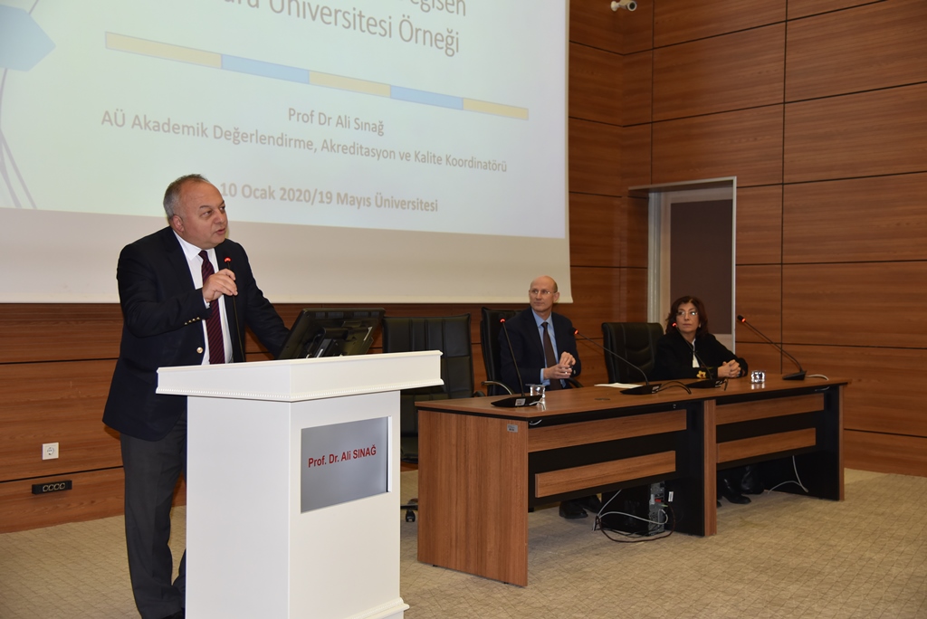 Sınağ, Ondokuz Mayıs Üniversitesinin kaliteyle ilgili çalışmaları yerinde gördüğünü, kalite sürecinin izlenildiği yazılımı son derece etkileyici bulduğunu söyledi. Bu nedenle Üniversite yönetimini kutlayan Ali Sınağ sözlerini şöyle sürdürdü: “Yükseköğretimde rekabet oluştu. 208 Üniversite var ve her biri birbirinin aynısı değil. Burada çok önemli bir parametre var vizyon ve misyonların farklı oluşudur. Üniversiteler arasında çok büyük farklar oluşuyor. Bunun başında Üniversitelerin artık araştırma, eğitim, topluma hizmet gibi operasyonel süreçlerin hepsinde çıktı odaklı bir yaklaşım yer aldığını görüyoruz. Buna yükseköğretimde değişen dünya düzeni diyebiliriz. Yükseköğretimimin değişen gündeminde artık mezun olan öğrencinin işe ne kadar kısa sürede girdiği, mezunun kurumla ilişkileri, araştırma çıktısı olarak baktığınızda akademisyenimizin yaptığı araştırmanın sonuçlarının ne kadar yüksek etki değeri olan bir dergide yayınlandığı var. Artık makale yazmanın ötesinde ürün odaklı üniversitelerin laboratuvarlarında yapılan ürüne dönük olarak kurgulanması bunların hepsi çıktı odaklıdır. Değişen Yükseköğretim anlayışına adapte olmamız gerekiyor. Kalite yaklaşımında kuruma aidiyet çok önemli bir noktadır. Yükseköğretimde kalite güvence sistemi, bütün süreçlerde kurumun izlemesi ve iyileştirmesini esas alır. Türkiye’deki yükseköğretim kurumlarının tüm geri bildirim raporlarının verilerine her yıl periyodik olarak yayınladığı yokak.gov.tr adresinden ulaşabilirsiniz.” şeklinde konuştu.