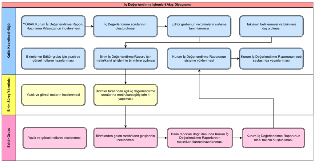 Her yıl “YÖKAK Kurum İç Değerlendirme Raporu Hazırlama Kılavuzu” doğrultusunda BİDR ölçütleri, açıklamaları ve kanıt talepleri Kalite Koordinatörlüğü tarafından gözden geçirilmekte ve üniversitemizde uygulanan çalışmaları da içerecek şekilde güncellemeler yapılmaktadır.